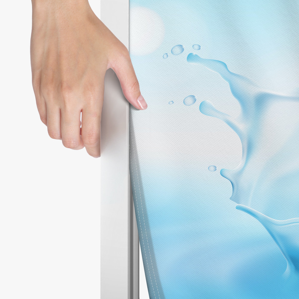 SEG or Silicon Edge Graphics can now be ordered at custom sizes to fit a customer's existing hardware extrusions. The same 6 oz polyester fabric we use with our SEG hardware is available in variable height and width. The fabric is direct UV printed in full CMYK and sewn with 10mm silicone keder.