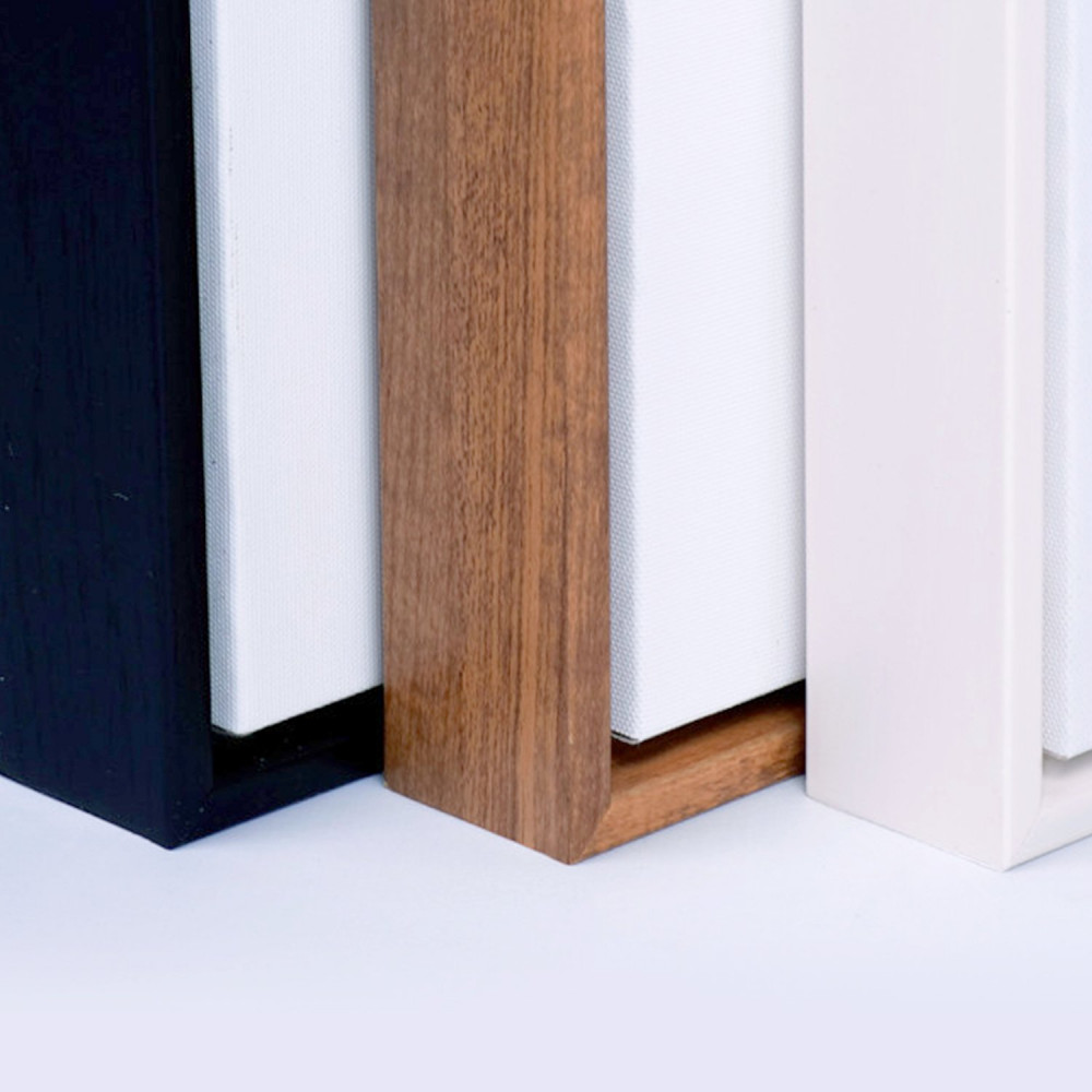Framed Canvases add a contemporary flair to our wall art offers. Printed canvas material is mounted on a hard backing board and then inset into our framing. The frame is 1.25" deep and the frame face is .25", the canvas is inset .25" all around for a clean and elegant look.